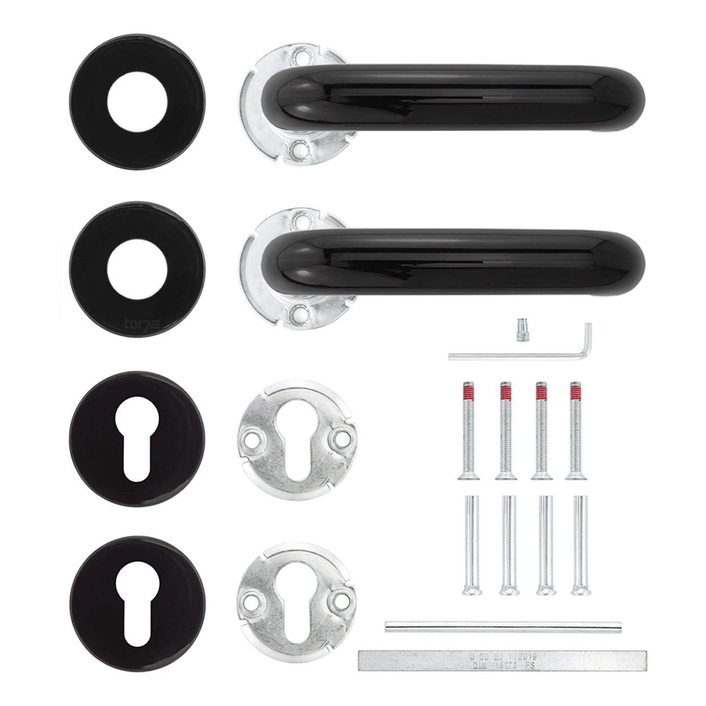 Die Hörmann Feuerschutz-Drückergarnitur vom Typ D110 mit Rosetten eignet sich für die Montage an verschiedenen Hörmann Feuerschutz- oder Mehrzwecktüren, kann durch die vielseitige Verwendbarkeit aber auch für Fremdfabrikate genutzt werden. Die robusten Grundplatten aus Stahl sowie die aus hochfestem schwarzen Polyamid-Kunststoff gefertigten Drücker mit der typischen U-Form des Typs D110 und die Zylinderrosetten mit PZ-Lochung gewährleisten eine lange Lebensdauer und Funktionalität. An Türen mit entsprechender Vorrichtung für Rosettengarnituren erfolgt der Austausch ohne Probleme und mit wenigen Handgriffen. Sämtliche Montagematerialien, eine Montageanleitung, ein 9 mm Vierkantstift sowie eine Bohrschablone sind im Lieferumfang enthalten.