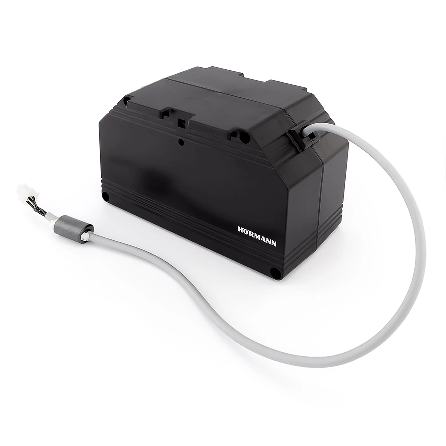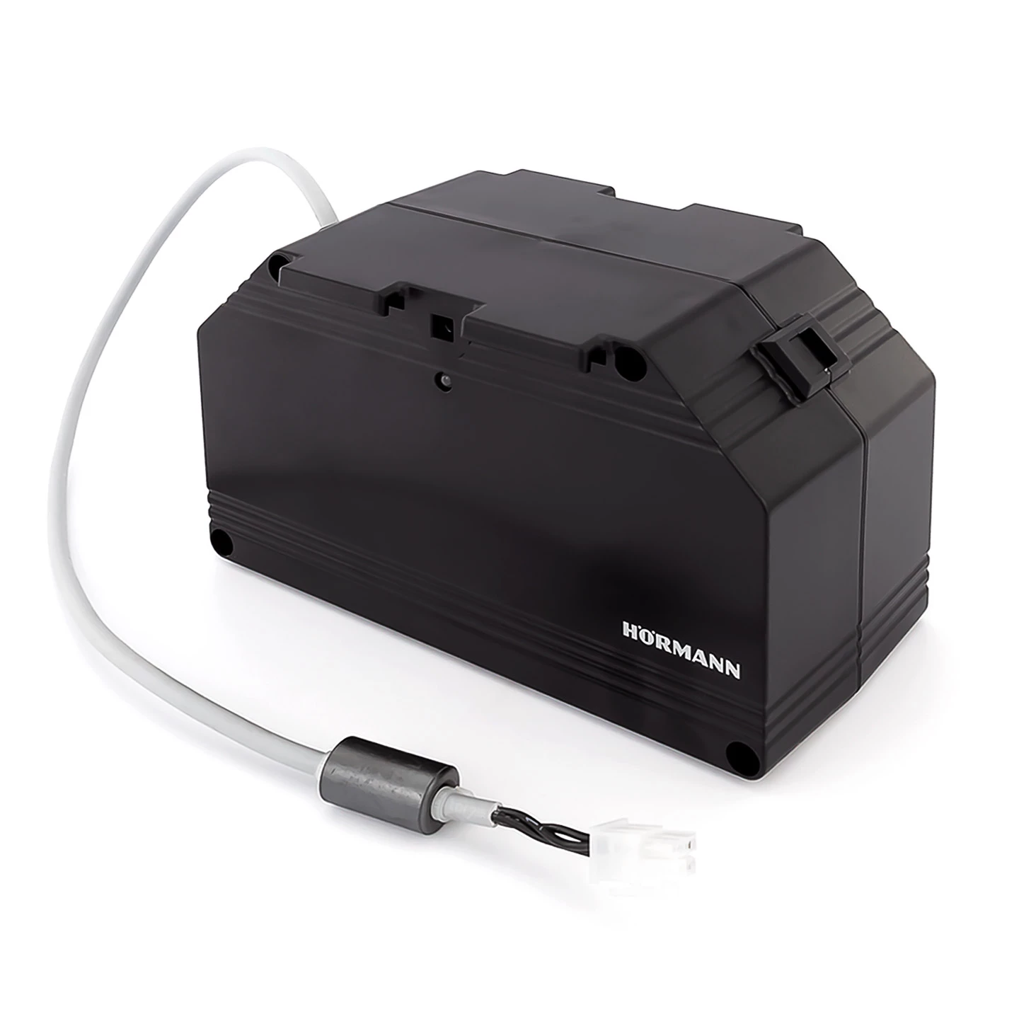 Bei einem Stromausfall funktioniert der elektrische Garagentorantrieb nicht und das Tor kann so nicht geöffnet werden. Um auch in solch einem Fall das Tor öffnen zu können, bietet die Firma Hörmann sogenannte Not-Akkus für ihre Torantriebe an. Der Not-Akku HNA 18-4 ist ausschließlich für die Garagentorantriebe SupraMatic und ProMatic der Serie 4 vorgesehen. Dieser kann mit seiner gespeicherten Energie abhängig von der Außentemperatur und dem Ladezustand einen Stromausfall von maximal 18 Stunden überbrücken. In diesem Zeitraum kann er den Antrieb für bis zu 5 Torzyklen mit Strom versorgen. Die Betriebsspannung des Akkus liegt bei 24 V, er verfügt über eine Kapazität von 2,3 Ah. Mit seinem Gewicht von nur 2,3 kg und den handlichen Maßen (B x H x T) von 186,5 x 111,2 x 79 mm kann der Not-Akku wahlweise direkt am Antrieb oder an der Decke angebracht werden.