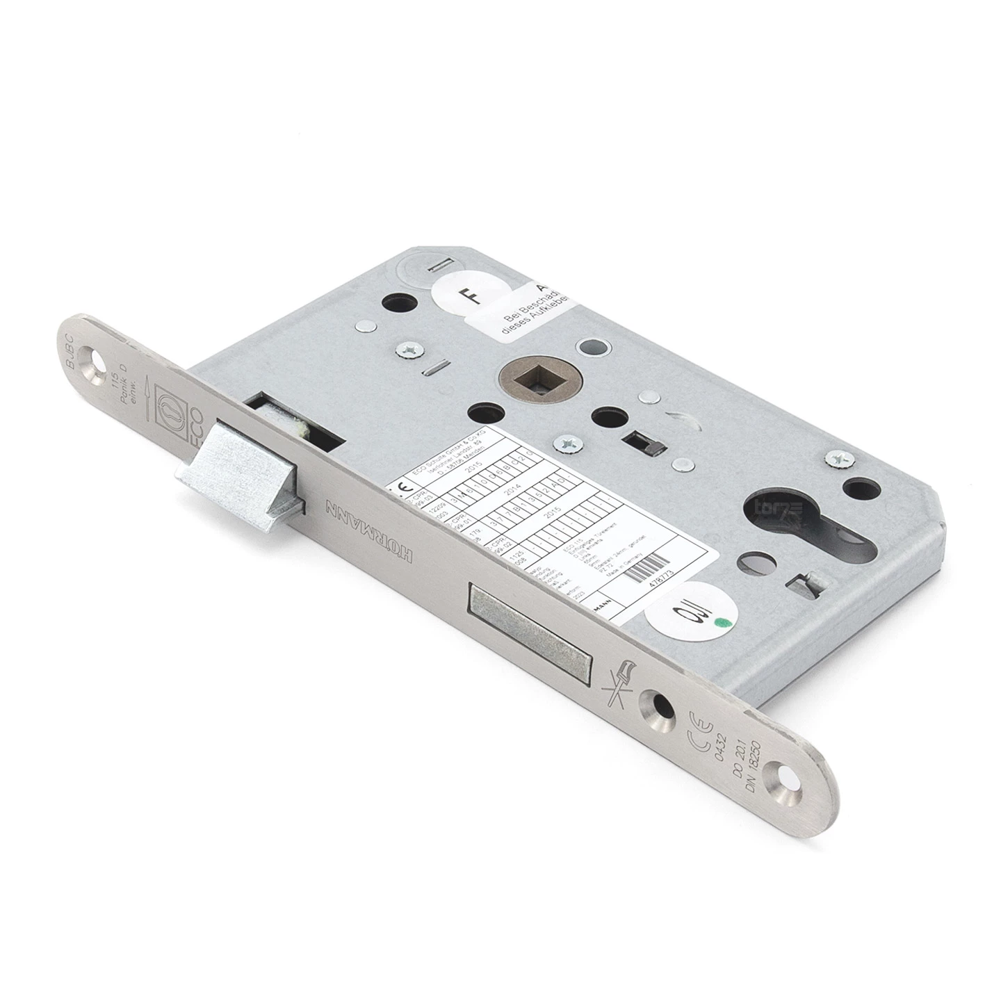 Das Hörmann Panikschloss ECO 115, Funktion D, einwärts wird als Zubehör für Stahl-Objekttüren angeboten. Die vorhandene Panikbedienung funktioniert jedoch nur bei 1-flügeligen Türen, bei denen beidseitig ein Drücker mit geteiltem Vierkant vorhanden ist. Ist dies gegeben, so kann das Schloss von außen auch ohne Schlüssel geöffnet werden, während nach innen eine ganz normale Verriegelung möglich ist. Wird z. B. ein neues Schloss für eine Fluchttür benötigt, so sollte man auf das Vorhandensein einer solchen Panikfunktion achten.