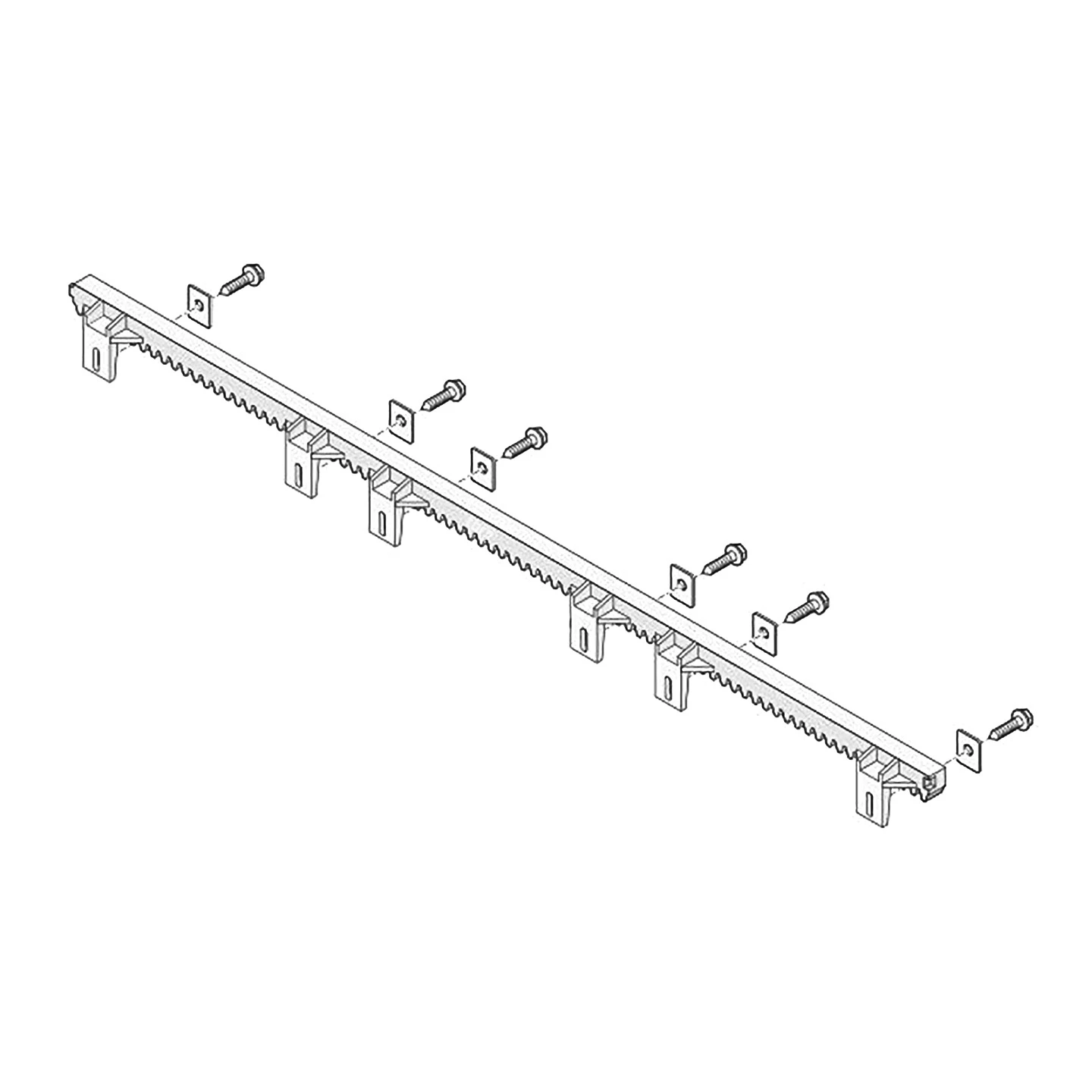 Jede Zahnstange ist 1 Meter lang und zur Anbringung am Torflügel mit 6 nach unten weisenden Befestigungslaschen versehen. Für deren Befestigung werden auch die passenden Schrauben und Unterlegplatten mitgeliefert. Die Kunststoffzahnstangen sind in Schwarz eingefärbt und durch einen im Inneren befindlichen Stahlkern stabilisiert. So werden die Vorteile beider Materialien miteinander verbunden. Kunststoffzahnstangen zeichnen sich etwa durch ihre Laufruhe aus, während Stahl anderseits deutlich stabiler ist. So läuft Ihr Schiebetor mit einer SOMMER Kunststoffzahnstange mit Stahlkern deutlich leiser, als wenn Stahlzahnstangen eingesetzt würden. Trotzdem sind die Bauteile aber so stabil, dass sie an Toren bis 600 kg eingesetzt werden können.