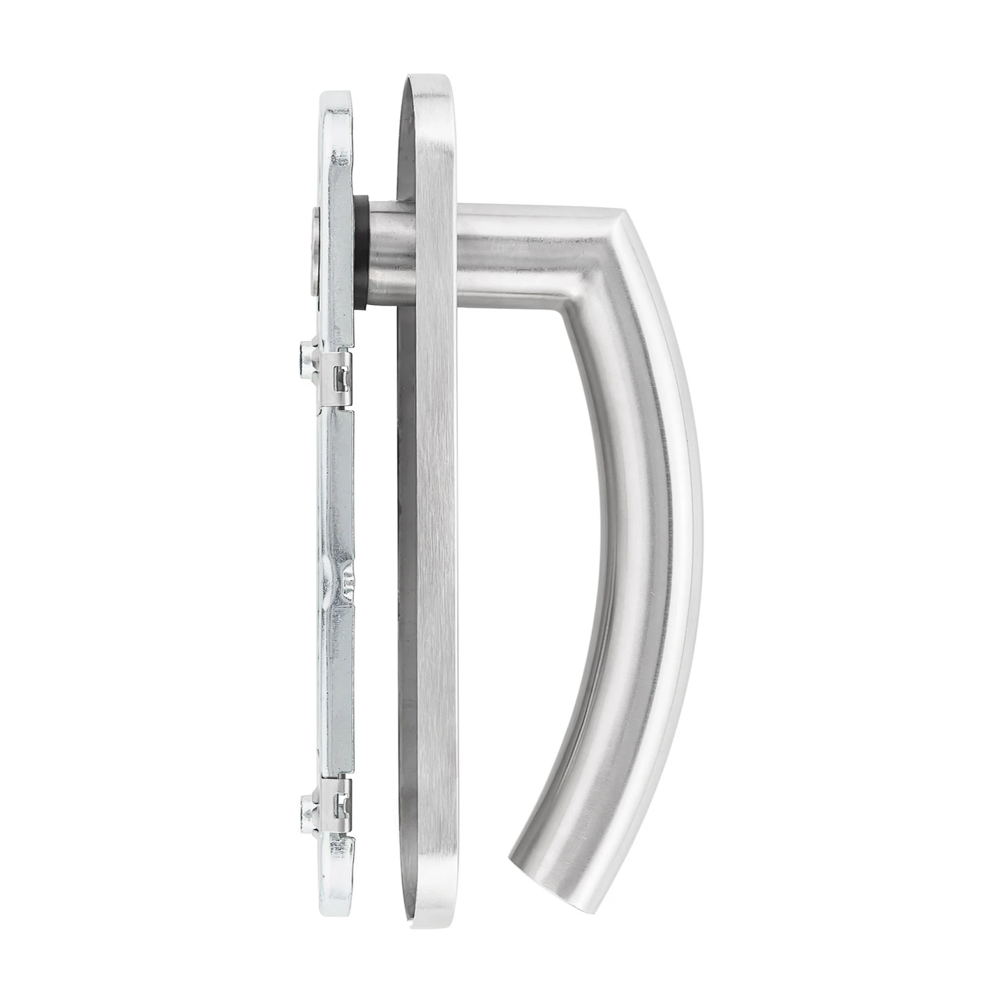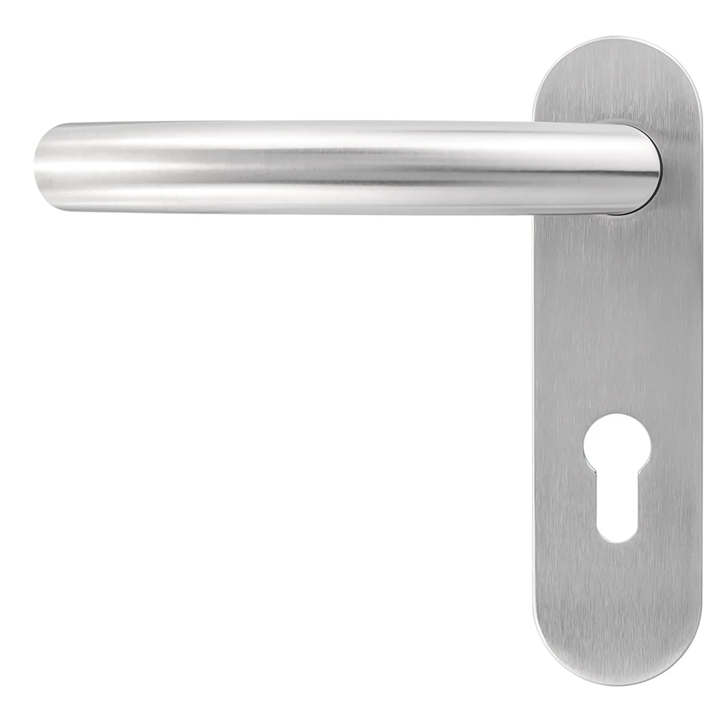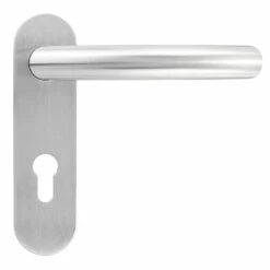Die Drückerführung ist mit einem wartungsfreien Gleitlager aus selbstschmierendem Kunststoff ausgestattet. Die Drücker sind festdrehbar gelagert und können für rechte sowie linke Anschlagtüren verwendet werden. Die stabile Stahlunterkonstruktion mit Stütznocken und durchgehender Verschraubung sorgt für einen stabilen und sicheren Sitz auch bei hohem Nutzungsaufkommen. Der hochwertige, rostfreie Edelstahl 1.4301, matt gebürstet, und das exklusive Design vom Typ 510 machen diese Garnitur zu einem echten Hingucker.