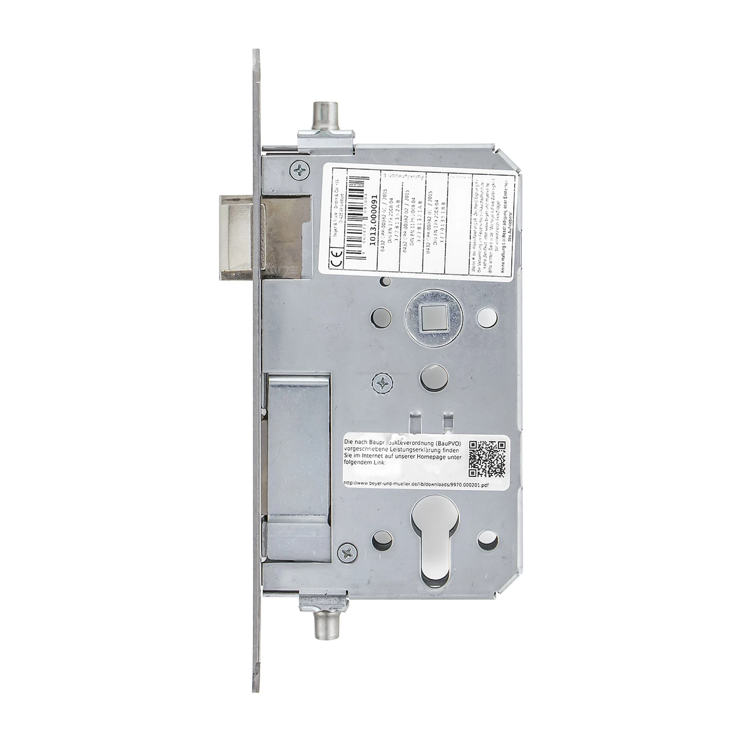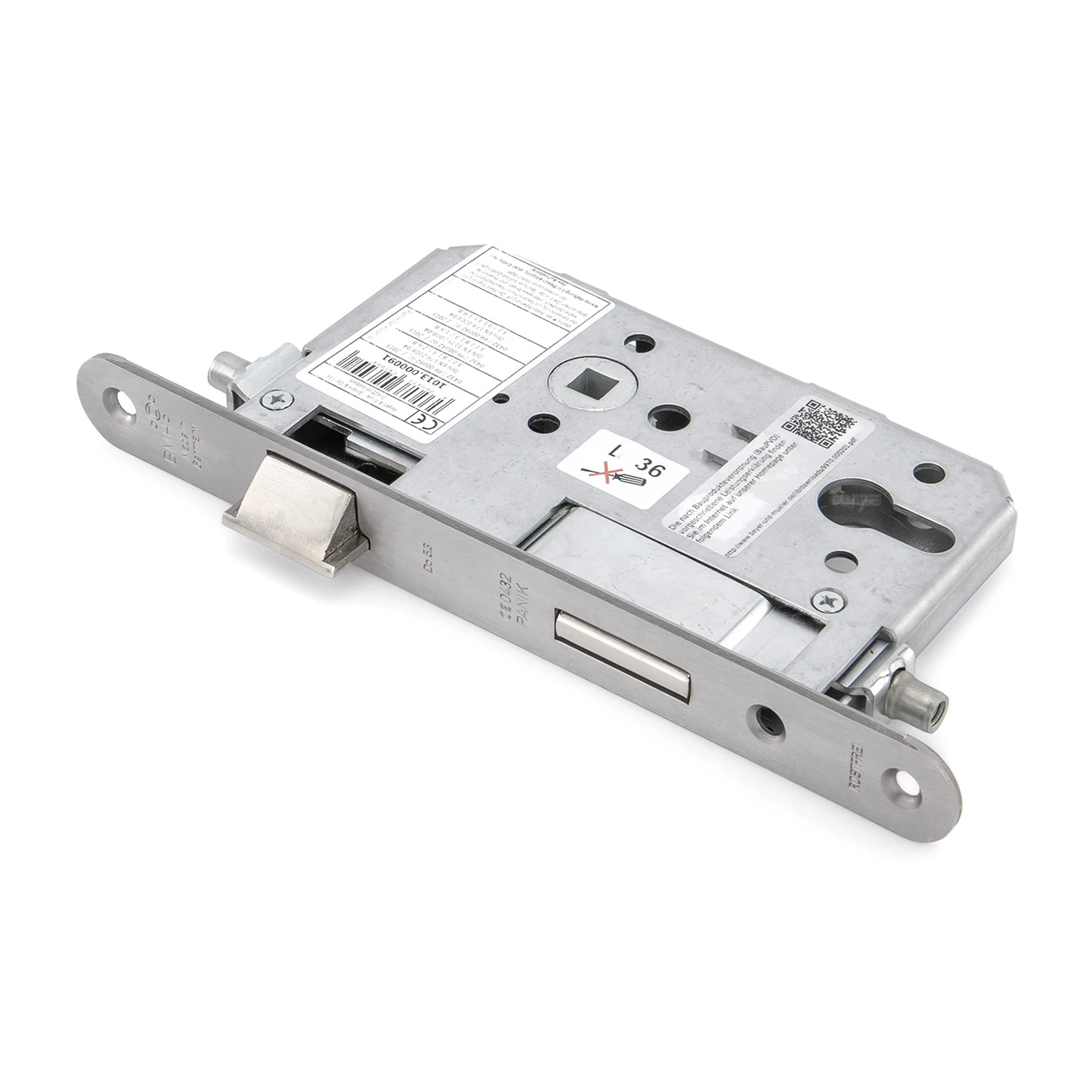 Das Teckentrup BMH 1013 STA Einsteckschloss mit Panikfunktion E wird als Ersatz oder bei Erstausstattung von Teckentrup Stahlblechtüren oder Fremdfabrikaten verwendet, die mit einer Wechselgarnitur (Drücker/Knauf) und einer Stangenverriegelung nach oben und unten ausgestattet sind. Die Fluchttürfunktion E nach DIN EN 179 / EN 1125 gewährleistet hierbei, dass die Tür in Fluchtrichtung auswärts immer begehbar ist, jedoch in Gegenrichtung durch den fest gelagerten Außenknauf nur mit Schlüssel geöffnet werden kann. Diese Panikfunktion ist vor allem bei Türen in Flucht- und Rettungswegen notwendig. Die bestehende Zulassung für Brand-/ Rauchschutztüren, sowie die Verwendung bei Mehrzwecktüren machen dieses Panikschloss universell für Türen mit entsprechender Verriegelung einsetzbar. Die PZ-Lochung ermöglicht den Einsatz eines handelsüblichen Profilzylinders, wobei der Schlossriegelausschluss 2-tourig erfolgt. Lieferbar ist diese Schlossausführung mit abgerundetem Edelstahl-Stulp für die Türanschläge DIN rechts und DIN links.