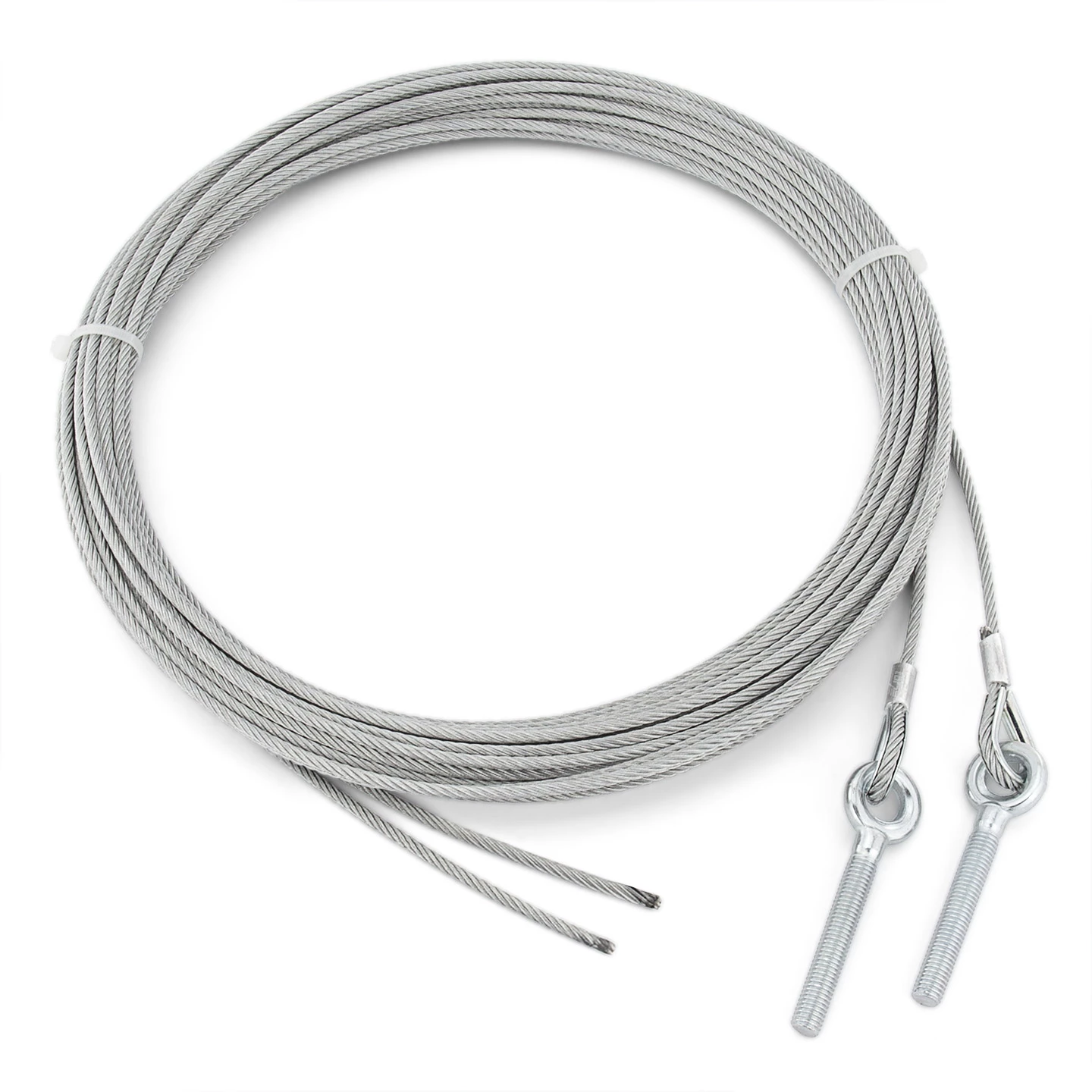 Das Ersatzteileset besteht aus jeweils zwei gleichlangen, 4 mm starken Stahlseilen. Es stehen dabei die Längen 7 m, 10 m und 12 m zur Verfügung. Eines der Enden ist bei jedem Stahlseil mit einer Kausche versehen, wo sich eine Ringschraube befindet. Diese dient dazu, das Zugseil an der Bodenkonsole des Torblatts zu befestigen. Die gegenüberliegenden Enden sind beim Teckentrup Stahlseil-Paar 4 mm, mit Kausche und Ringschraube offen und somit bei Bedarf kürzbar. Somit lassen sich die Zugseile ganz einfach auf die Längenangabe aus der Packliste des Tores anpassen.